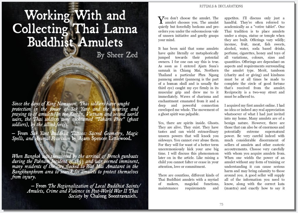 My article Working With and Collecting Thai Lanna Buddhist Amulets is published in volume 2 issue one of Rituals and Declarations. If you wish to secure your copy of this zine dedicated to the weird and wonderful you can place your order here.