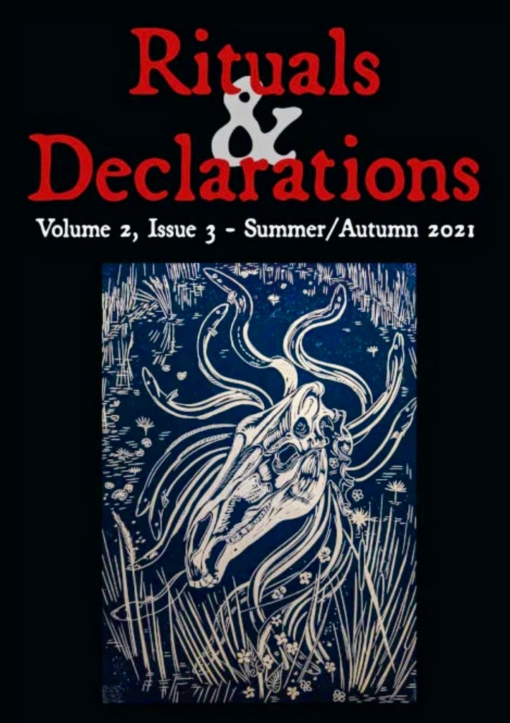 My article Magical Violence Within Buddhist and Eastern Philosophy is in the next issue of Rituals & Declarations Volume 2 Issue 3. It is now pre-ordering and copies can be acquired here. The delightfully handsome cover art is by Maria Strutz. It relates directly to the article Kissing the Eel: by Emily Banting which is reprinted with the kind permission of David Southwell (who is currently in need of treatment for health issues which are being fund-raised here.) This penultimate issue of Rituals & Declarations is jam packed with the finest of quality writings pertaining to the weird and occult by an eclectic, esoteric, and sterling group of contributors which features Paul Watson, Hookland, Sylvia Warren, L B Limbrey, Ben Graham, Bec Lambert, Beth Winegarner, Kevin Bateman, and Maria Blyth, to name but a few. Do please buy your copy and don’t get stroppy. It’ll be sure to sell out as it is a limited run small press zine.