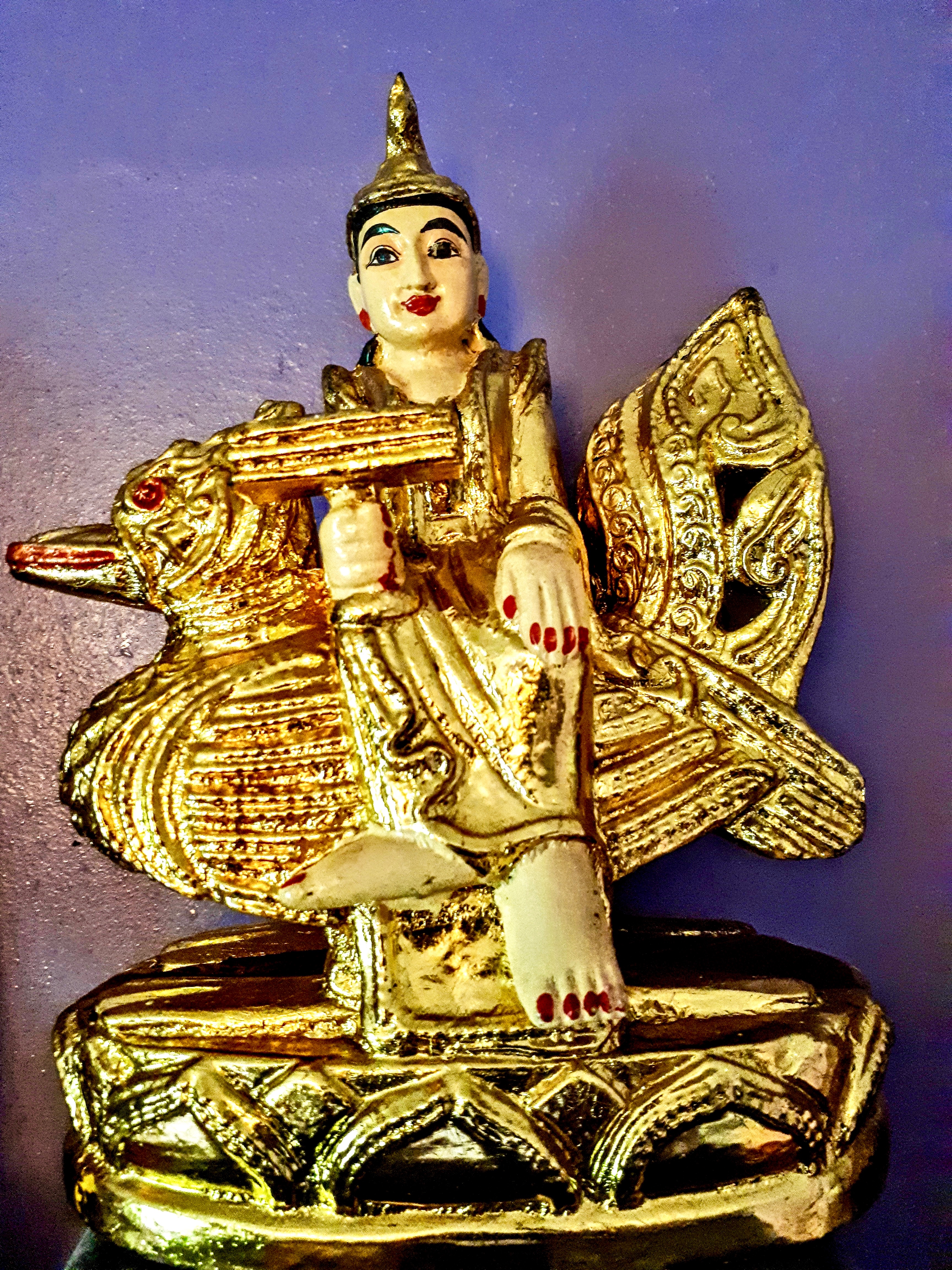 My album Gateway to the Goddess is one such devotional act. This two-track album of luxuriant immersive electronic music journeys through various moods and vistas. Gateway to the Goddess pays homage and is lovingly dedicated to my mother and Olivia Robertson, author, artist, co-founder, and high priestess of the Fellowship of Isis (a peaceful society honouring the Goddesses of all cultures, races, and religions) and finally but by no means least to the magnificent and praiseworthy Thai and Burmese Buddhist deity Mae Surasatee, Goddess of knowledge, music, art, wisdom, and learning. Since allowing Mae Surasatee into my life a profound and continuous internal shift has occurred. Embracing this deity into my life has for all intents and purposes made my burdens lighter and easier to manage while extending my patience. My practice has benefitted considerably and my music and personal focus in terms of productivity along with it. I am now capable of prolonged periods of single pointed focus which have now manifest into the audio work I produce. It’s frighteningly easy for me to completely lose sight of myself and see all track of linear time disappear. Entering a relationship with a deity such as Mae Surasatee is akin to opening a portal from which there can be no return. Since my enchantment and initiation into this cult I have become another person completely.