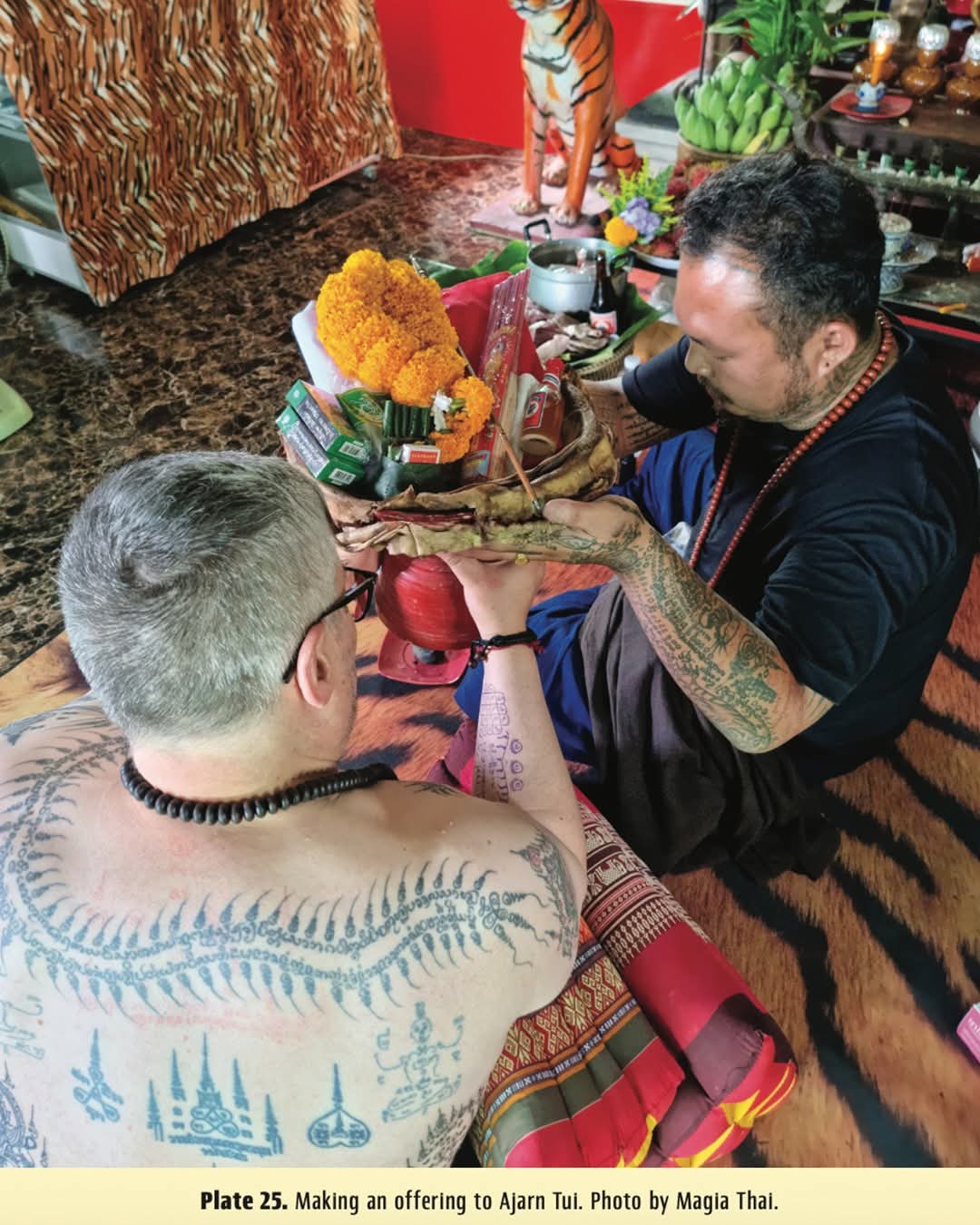 This charming Lersi amulet made by Ajarn Suthep, the countryside sorcerer, has strong protective powers. I had the great privilege of meeting and experiencing magickal rituals with Ajarn Suthep during my fourth pilgrimage which is fully documented in my new book Thai Tattoo Magick – The Initiatory Practices of the Thai Buddhist Magicians which is out now on Inner Traditions.