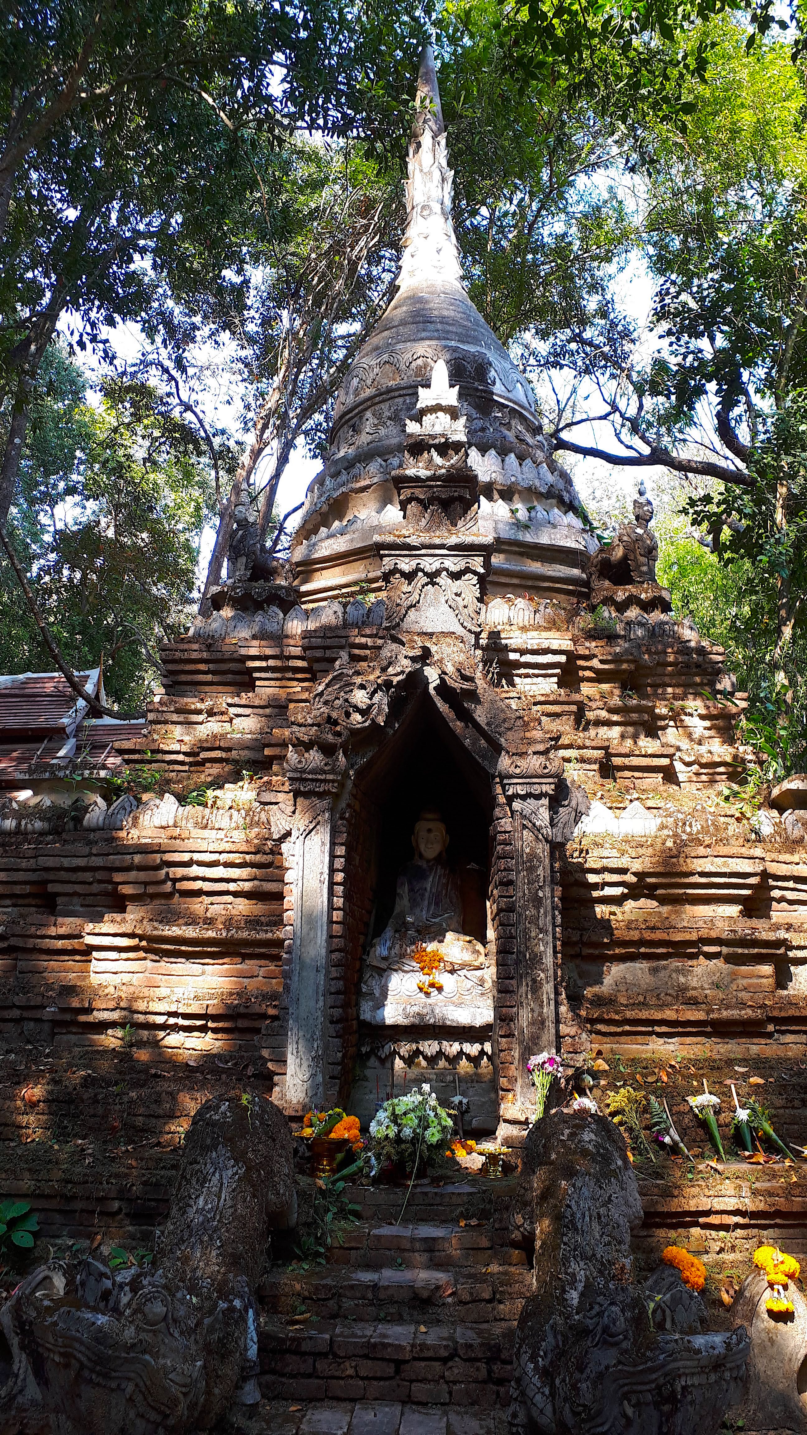 The tree ultimately can be seen as a totem of divine magick, a transcentral point of veneration, healing and transformation. During veneration in Buddhist practices it is praised with markings, ribbons, prayers, statues, pots of money and a complex variety of esoteric votive offerings which festoon this most treasured of ancient symbols. Trees of course have significant meaning in various spiritual traditions across the world and in many cases are viewed as sacred and divine entities that connect the earth to the heavens, to invisible spirits and mankind itself to these guardians of enduring presence and protection. In Buddhism the tree is directly connected to Buddha in not just one but various instances that underline its symbolic importance. The Buddha himself was born in a sacred grove of trees at Lumbini, his mother Queen Maya grasping onto a tree branch during his birth. Prince Siddhartha along with other spiritual ascetic practitioners performed acts of renunciation in a forest near Kapilavastu. He then resided in this forest as a practitioner himself. This event in Buddha’s life seeded the idea of monks abiding and travelling to and from and dwelling in forests. Today the Kammaṭṭhāna Forest Tradition of Thailand (the Thai Forest Tradition) is a lineage of Theravada Buddhist monasticism which started around 1900 with Ajahn Mun Bhuridatto, respectfully reflecting the ancient originating point of initiation. Buddha experienced spiritual awakening under a tree over the course of seven days. Buddha taught his first sermon in a forest at Sarnath. Then later at Kushinagar, a town in the Kushinagar district, Uttar Pradesh in India, Buddha is believed to have died and attained Parinibbana. After a journey from Pāvā, he delivered his last teachings to his disciples before passing away near a grove of sacred trees. The Mahāparinibbāṇa Sutta is a scripture concerning the end of Buddha’s life and is the longest sutta of the Pāli Canon. It’s the principal source of reference of the Buddha’s death.